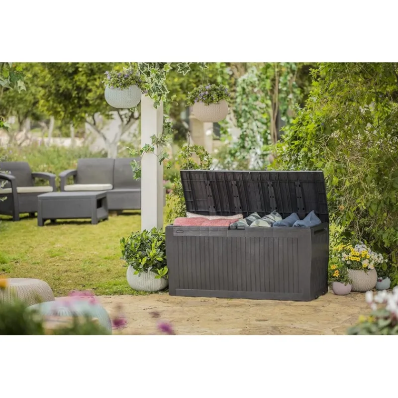 Set 2 Poltrone + Tavolino contenitore con Cuscini SALEMO BALCONY Grafite-Keter Hot