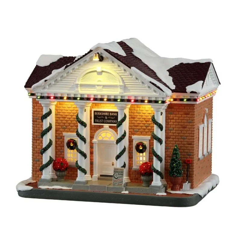 Lemax Berkshire Bank & Trust Company Cod. 15812 misura cm 22.4 x 15.4 x 17.2h, è composto principalmente in Poliresina e dispone di un proprio alimentatore nella confezione.