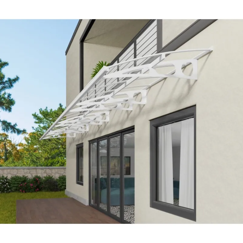 Scopri la Pensilina da Esterno Canopia Bordeaux 892X140 cm Trasparente, perfetta per proteggere ingressi e facciate dalle intemperie. Realizzata con bracci di supporto in acciaio galvanizzato e pannelli resistenti ai raggi UV, offre un design robusto e moderno. Facile da installare grazie al kit di assemblaggio fai da te, non necessita di manutenzione. Aggiungi valore alla tua casa con questa soluzione ecologica e resistente.