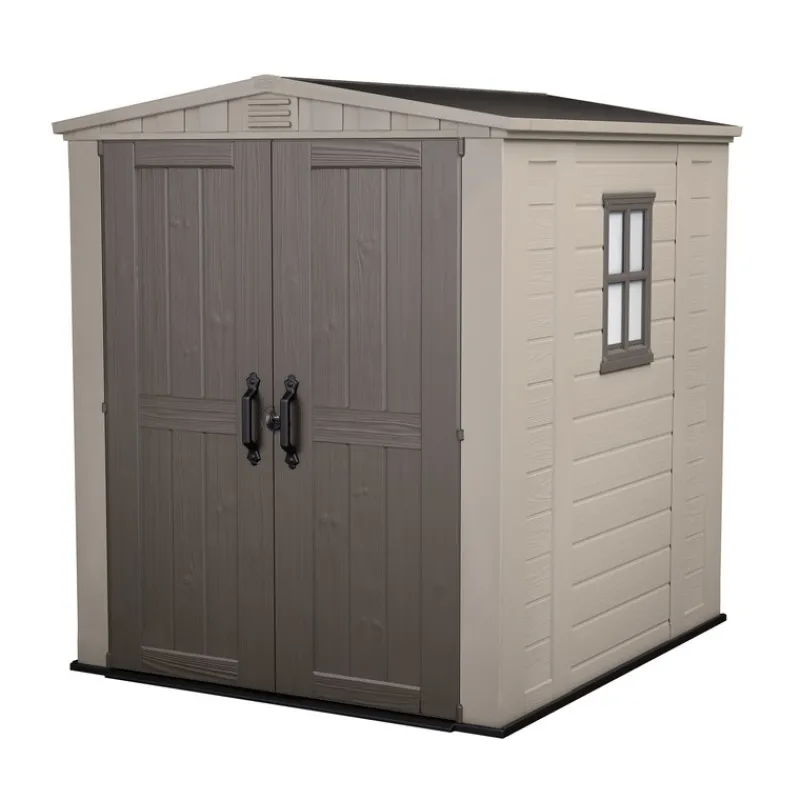Casetta in polipropilene rinforzato, robusta e ideale per riporre attrezzi e per qualsiasi esigenza in giardino.