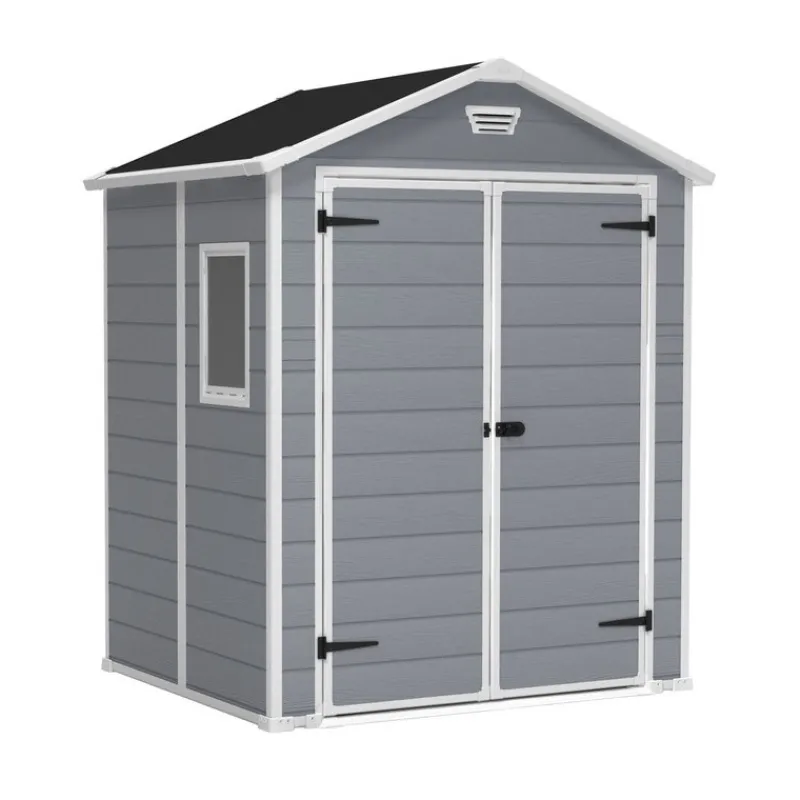 Casetta in polipropilene rinforzato, robusta e ideale per riporre attrezzi e per qualsiasi esigenza in giardino. Ottimo isolamento dalle condizioni esterne. Assemblaggio semplice ed intuitivo. Dotata di griglia di ventilazione e di una finestra fissa per massimizzare la luce naturale.