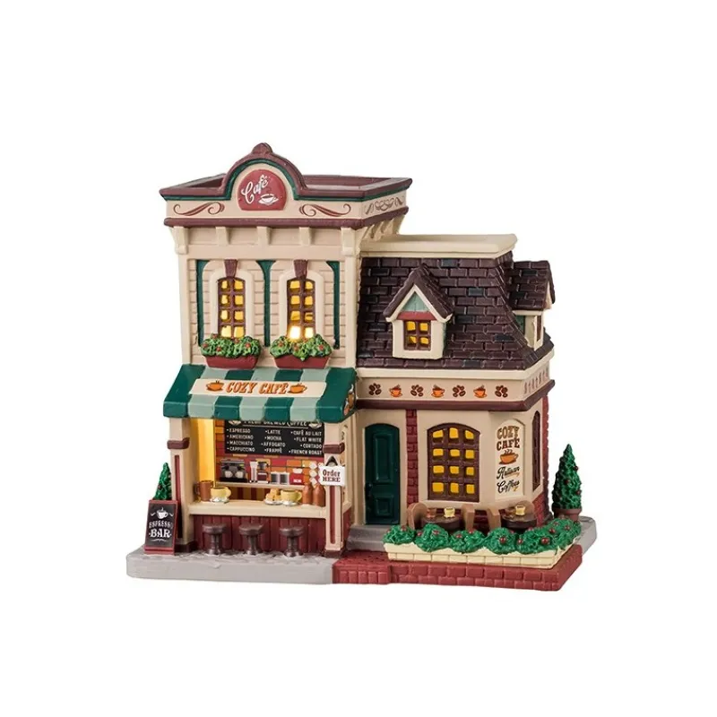 Il Cozy Café è un dettaglio di grande fascino, realizzato con cura e attenzione per i particolari da Lemax. Con le sue piccole dimensioni, si inserisce perfettamente in ogni scenario, portando con sé un’atmosfera di calore e accoglienza.