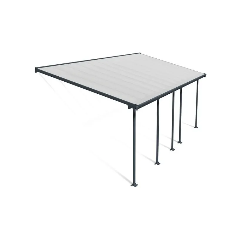 Godetevi la vita all’aperto con la copertura per patio Palram – Canopia Feria. Utilizzate questa copertura estetica e priva di manutenzione come copertura per patio, tettoia, solarium o spa: date libero sfogo alla vostra immaginazione. Godetevi le riunioni di famiglia e i barbecue senza lasciare che il tempo capriccioso rovini il divertimento. Questa struttura ad alte prestazioni è progettata per essere facilmente assemblata da due persone, utilizzando il sistema di copertura Click N’ Lock per un montaggio facile e sicuro, che blocca le vetrate tra le barre della struttura e impedisce all’acqua di entrare nelle vetrate. Non richiede esperienza, né competenze o strumenti particolari. Feria offre alla vostra famiglia un riparo elegante, robusto e privo di ruggine per gli anni a venire.