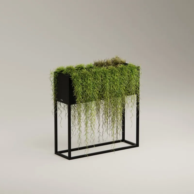 Metal Planter HUB è dotato di fioriere rialzate realizzate in acciaio zincato a caldo. Con dimensioni di 80 cm di lunghezza, 25 cm di larghezza e 79 cm di altezza, questo tavolo è progettato per il comfort e consente la coltivazione di un’ampia varietà di piante. L’area di semina è profonda 25 cm. Questa fioriera può essere montata in tre diverse posizioni, con il corpo della semina alla base, al centro o in alto. Include anche connettori, che consentono di collegare più fioriere insieme sia verticalmente che orizzontalmente, semplificando la creazione di pareti verdi dinamiche che apportano un tocco naturale a qualsiasi spazio.