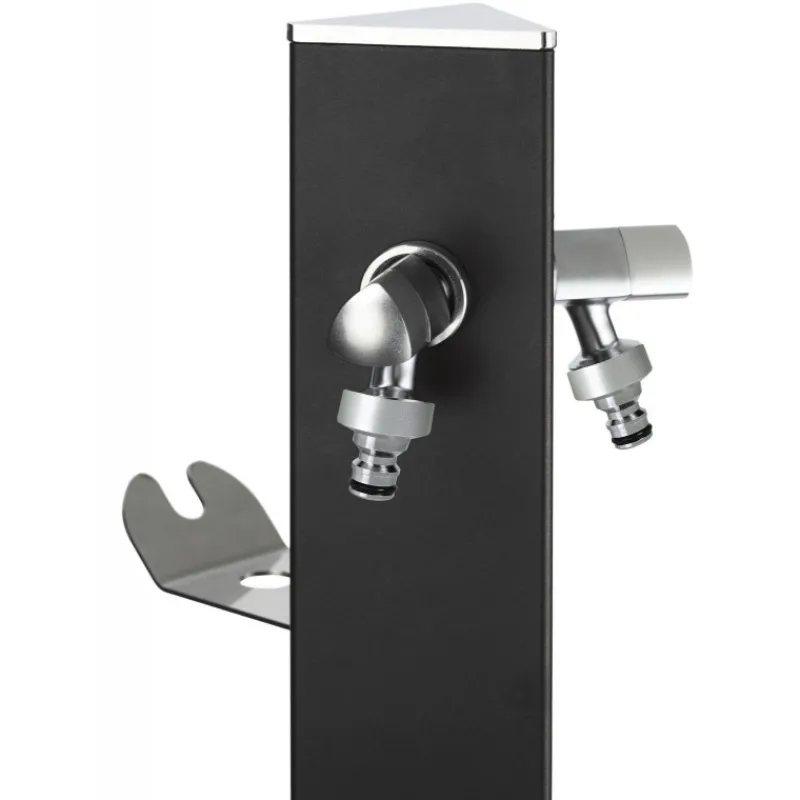 Colonnina idrica in acciaio verniciato triangolare da interrare, completa di due rubinetti e sella portatubo in acciaio inox. Accessori di fissaggio esclusi. Disponibile in 6 colori.