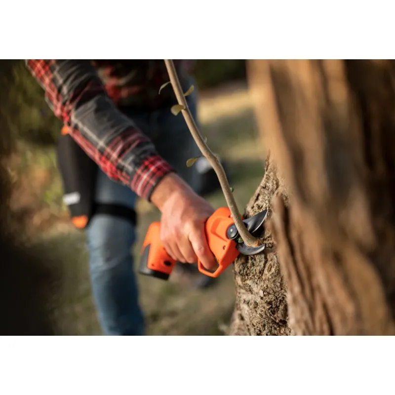 Grazie alla batteria al Li-Ion ricaricabile da 2,5 Ah/14,4 V in dotazione, ha un’autonomia di ben 3 ore, che corrispondono circa a 2.000 tagli*. L’operatore può tagliare rami fino a 25 mm in modo agevole, riducendo lo sforzo e lo stress sulla mano e polso, anche grazie al design ergonomico che garantisce una comoda impugnatura e al peso leggero di soli 900 g.