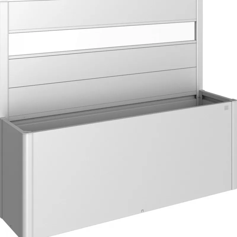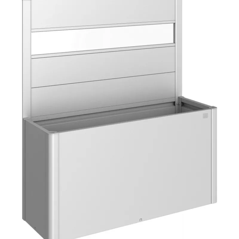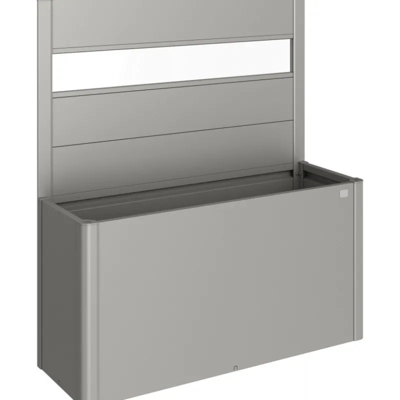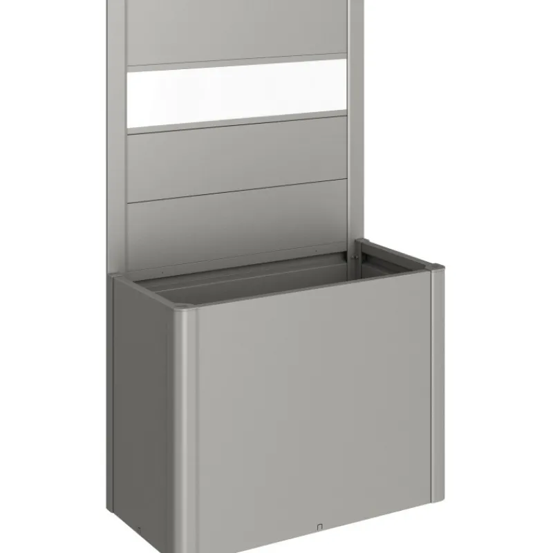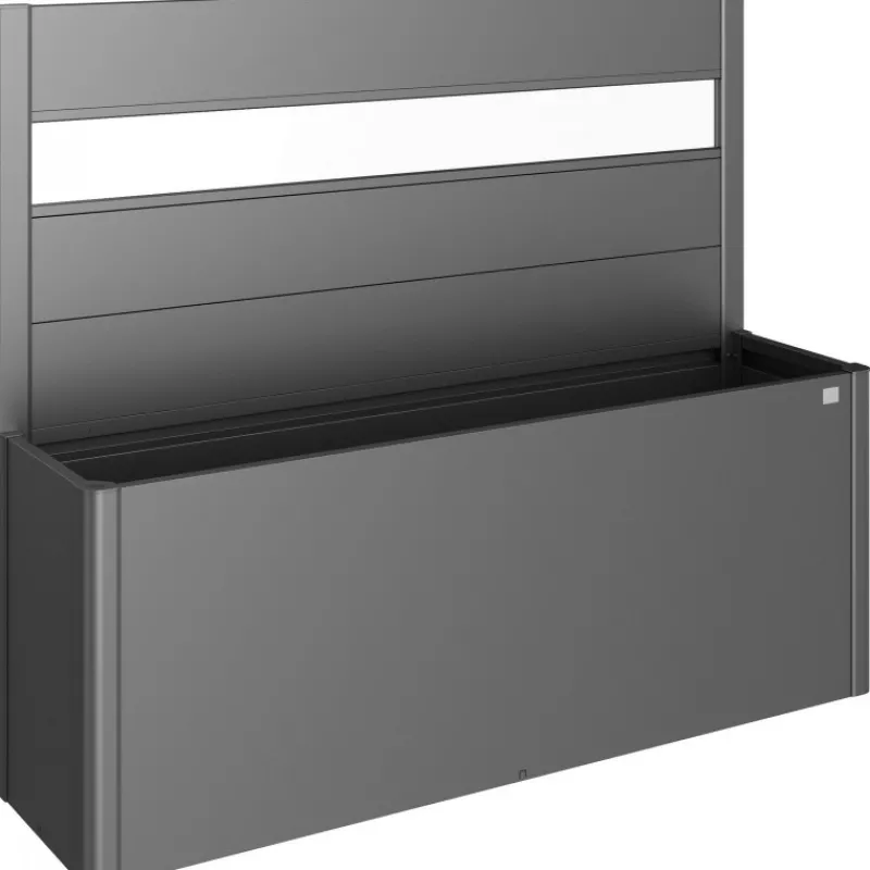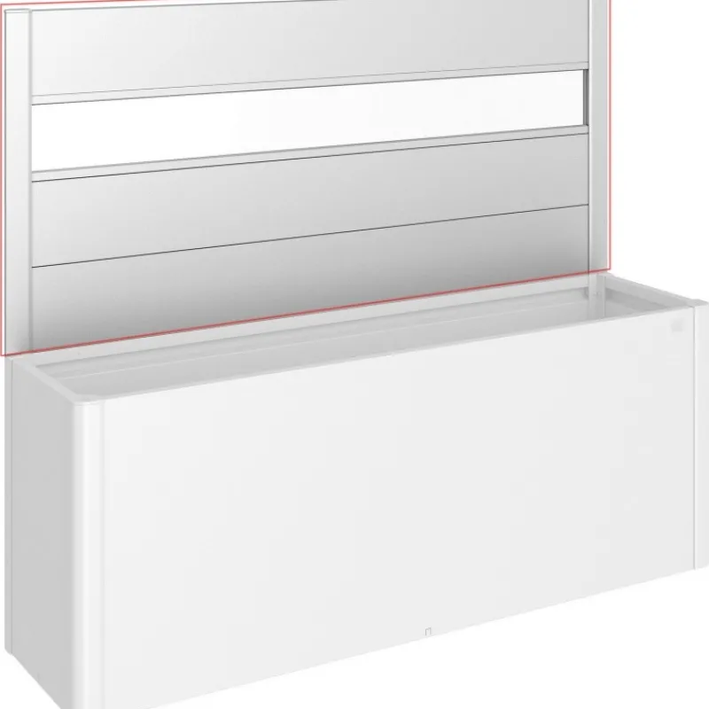 Frangivista con elemento vetro in acrilico per fioriera Belvedere. Il frangivista crea una delimitazione decorativa e non solo si fa apprezzare per l’estetica, ma serve anche come protezione dal vento. Non può essere combinato con il sopralzo o la protezione contro le lumache.