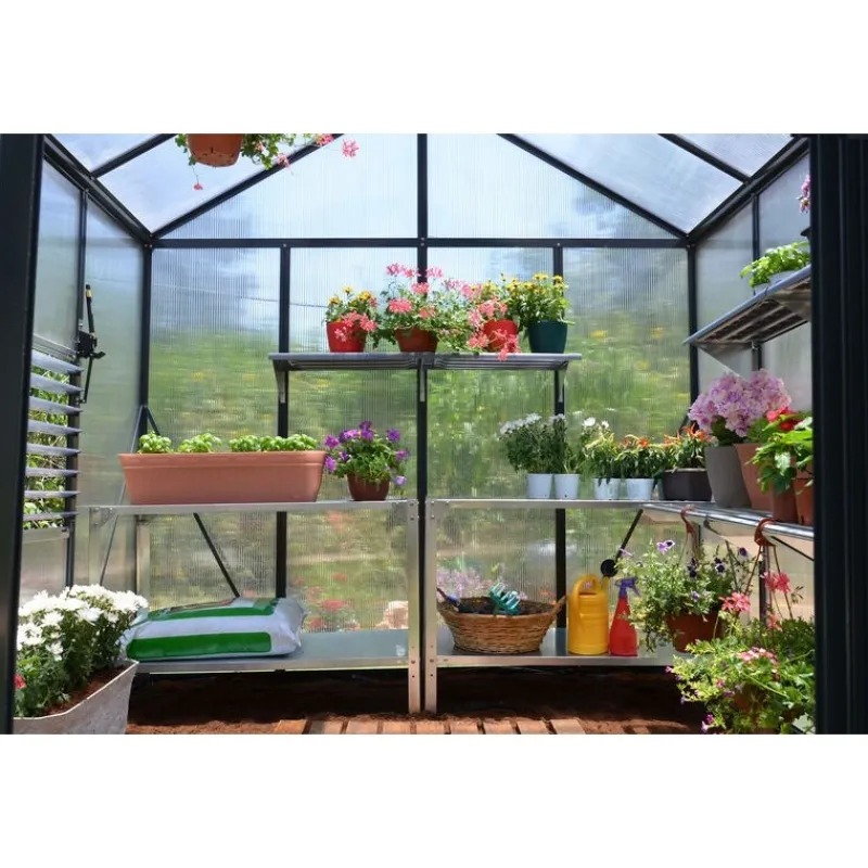 La serra Glory offre condizioni ottimali per far crescere piante e fare giardinaggio con successo. L’ampia porta di ingresso e gli accessori inclusi garantiscono ventilazione ottimale per mantenere umidità e temperatura corretta. Il tetto alto offre tanto spazio per piante ricche di foglie e che tendono a crescere in altezza. La base in acciaio inossidabile galvanizzato offre maggiore altezza, supporto, stabilità e allineamento. La serra è esteticamente bella ed elegante grazie a telaio in alluminio robusto verniciato a polvere grigio. Questa è progettata per durare a lungo.