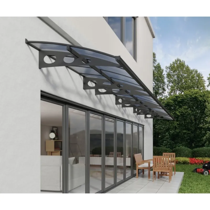 Il tettuccio per porta Herald elegante e robusto è progettato per tenere ingresso e porta asciutta e protetta dalle intemperie. Copre porta di ingresso, barbecue e bicicletta. I bracci di supporto in acciaio galvanizzato verniciato a polvere, la parte frontale in alluminio e le finiture posteriori, insieme a pannelli in policarbonato doppi resistenti a UV al 100% praticamente indistruttibili che filtrano i raggi del sole dannosi, rendono Herald una pensilina perfetta. Il design robusto e moderno si abbina a ogni arredamento. La grondaia frontale e la guarnizione in gomma nascosta spingono pioggia e neve di lato, tenendo l’ingresso pulito. Questo prodotto fai da te è realizzato in materiali di alta qualità che assicurano durata per anni e include tutti gli accessori per il montaggio.