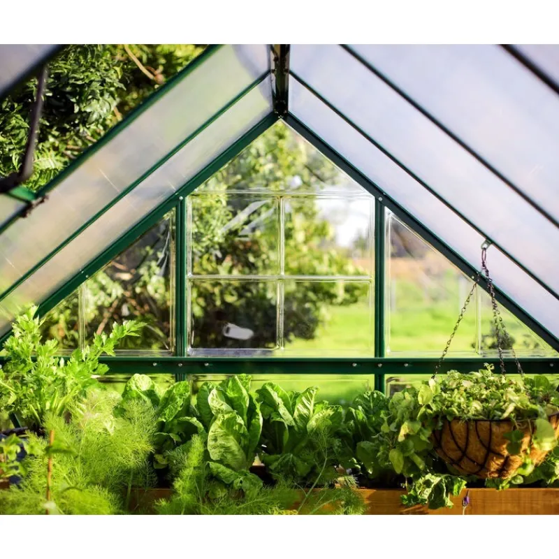 Hybrid è un modello di serra ingegnoso per appassionati di giardinaggio che offre 2 tipi di pannelli in policarbonato praticamente indistruttibile insieme a telaio in alluminio inossidabile resistente, verniciato a polvere. Questo prodotto soddisfa tutte le esigenze di giardinaggio. I pannelli sul tetto doppi bloccano il 100% dei raggi UV dannosi e diffondo la luce diretta del sole. I pannelli sui lati trasparenti fanno passare il 90% della luce del sole. La serra Hybrid è robusta, esteticamente bella e non richiede manutenzione per anni di divertimento in giardino.