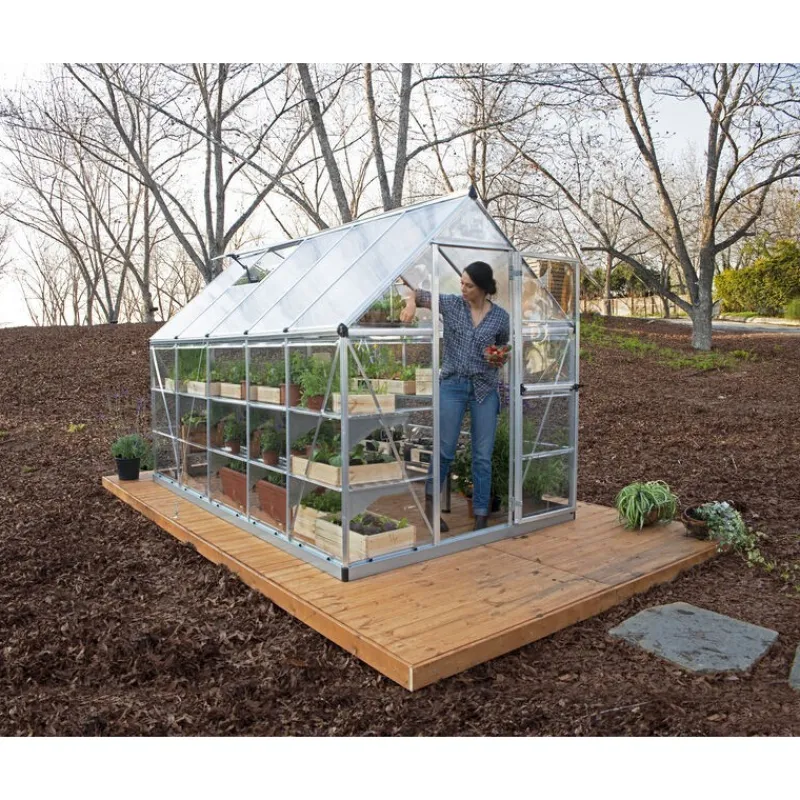 Hybrid è un modello di serra ingegnoso per appassionati di giardinaggio che offre 2 tipi di pannelli in policarbonato praticamente indistruttibile insieme a telaio in alluminio inossidabile resistente, verniciato a polvere. Questo prodotto soddisfa tutte le esigenze di giardinaggio. I pannelli sul tetto doppi bloccano il 100% dei raggi UV dannosi e diffondo la luce diretta del sole. I pannelli sui lati trasparenti fanno passare il 90% della luce del sole. La serra Hybrid è robusta, esteticamente bella e non richiede manutenzione per anni di divertimento in giardino.