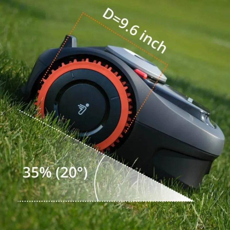 Aiuta Navimow a gestire con facilità i terreni bagnati e scivolosi. Gli speciali tacchetti delle ruote garantiscono una trazione eccezionale su terreni con pendenze fino al 35%.
