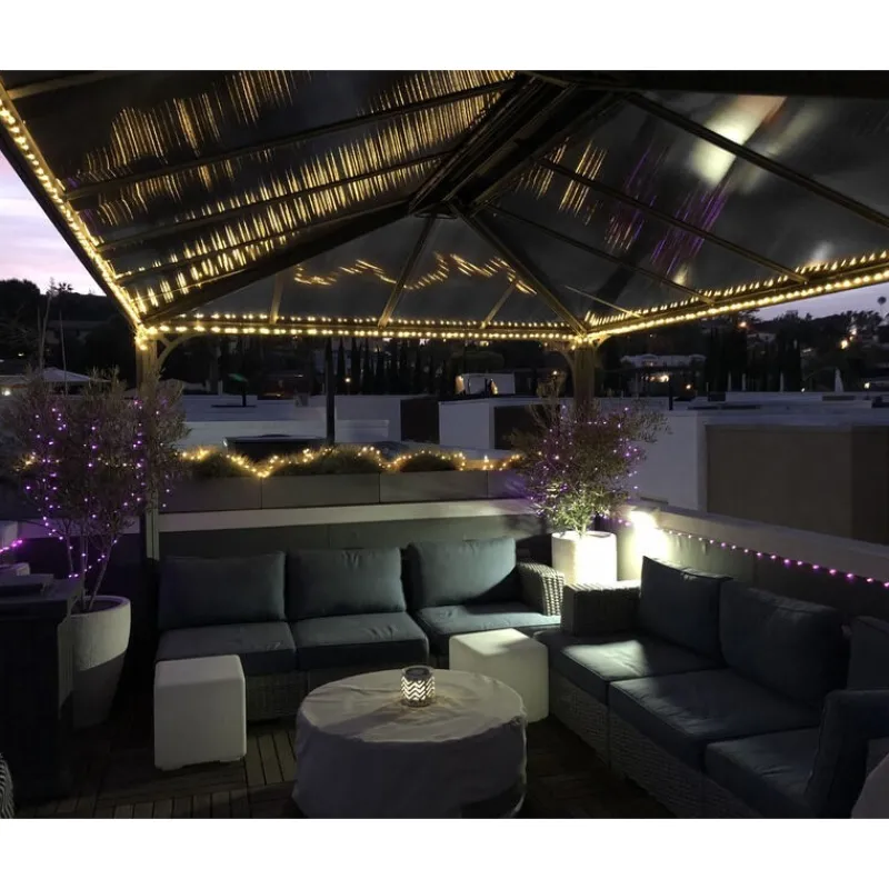 Il gazebo Martinique offre eleganza e funzionalità per il giardino tutto l’anno. Un’aggiunta meravigliosi per eventi in famiglia o rilassarsi durante una giornata di riposo in estate. Include verniciatura a polvere antracite elegante che resiste a corrosione e pannelli in policarbonato doppio da 6 mm di colore bronzo che proteggono da raggi UV dannosi, grandine e neve. La forma rettangolare migliora l’aspetto del giardino, rendendo lo spazio esterno più comodo, perfetto per barbecue o spa all’aperto. Rilassati con stile, riunisciti con la famiglia e organizza cene all’aperto godendo di aria fresca e vista del giardino.