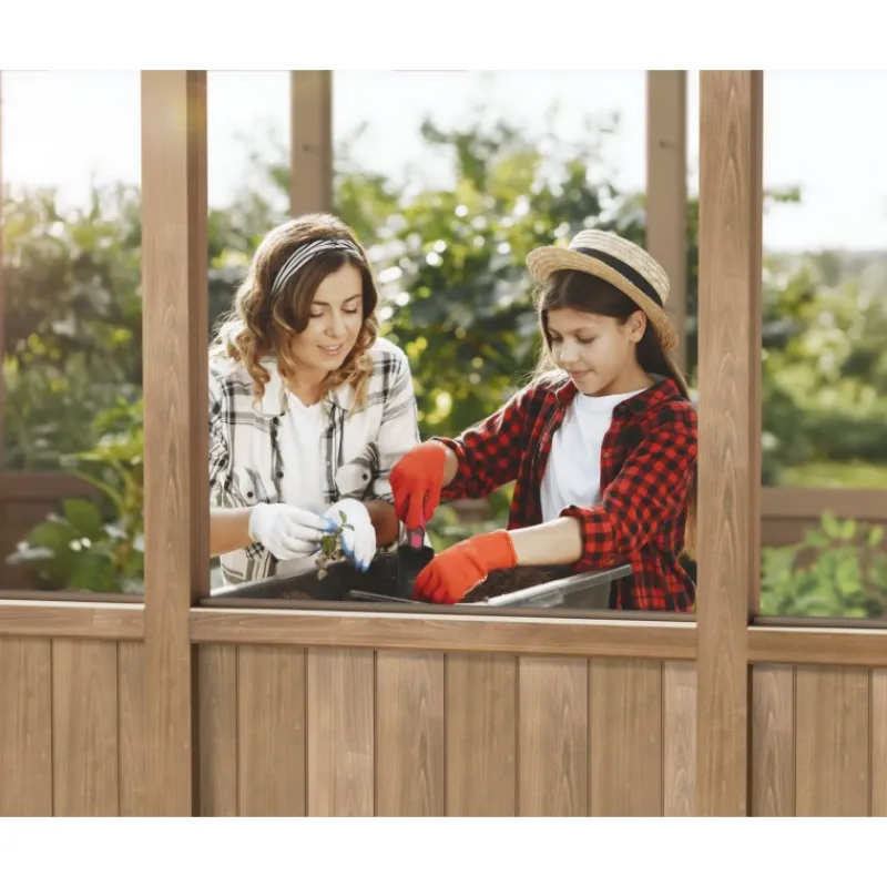- Materiali sostenibili: Realizzata con cedro di provenienza responsabile e policarbonato ecologico, questa serra è una scelta sostenibile per il vostro giardino e per il pianeta.