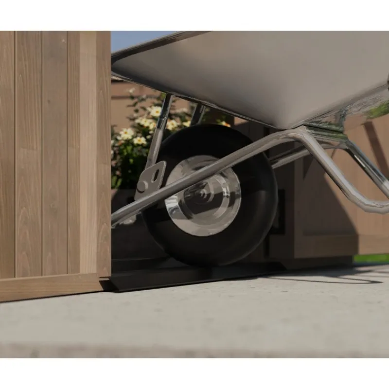 - Design accessibile: Un’ampia porta d’ingresso con serratura e una rampa a bassa soglia facilitano l’ingresso e l’uscita di piante, attrezzi e persone.