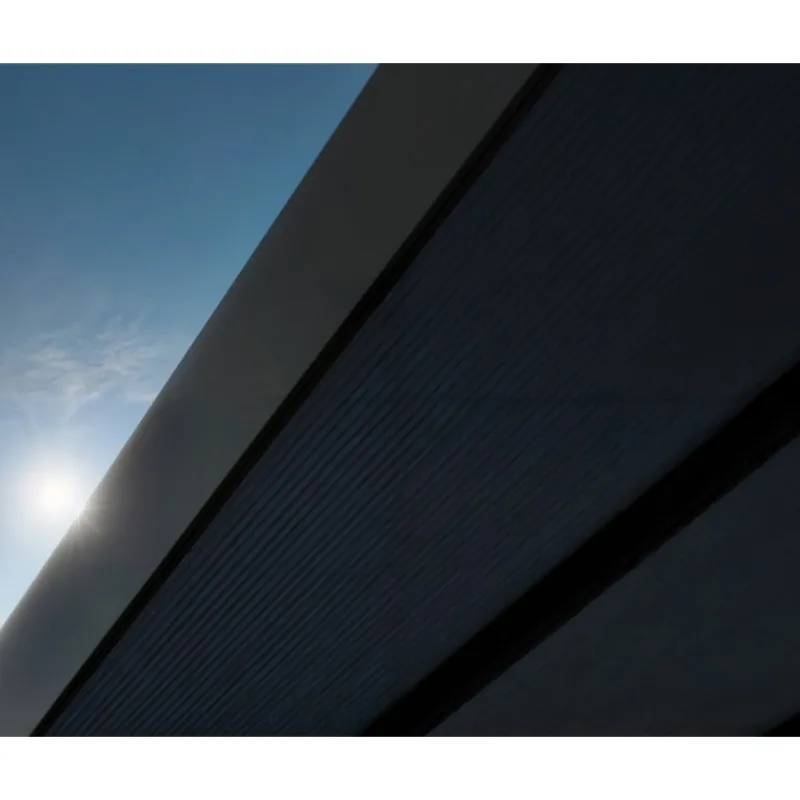 - Accessori disponibili: perfezionare la pensilina Oslo con un riscaldatore IR in fibra di carbonio e un’illuminazione perimetrale/interna, disponibili separatamente.