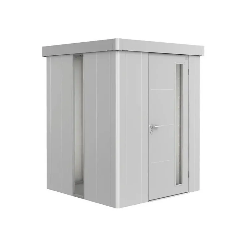 L’elemento vetro acrilico oscurato per Casetta NEO è racchiuso in una cornice metallica (dimensioni: 28 x 207 cm) e può essere installato in modo flessibile in qualsiasi parete laterale, ma non affiancato a una porta, a un elemento angolare o a un altro pannello.