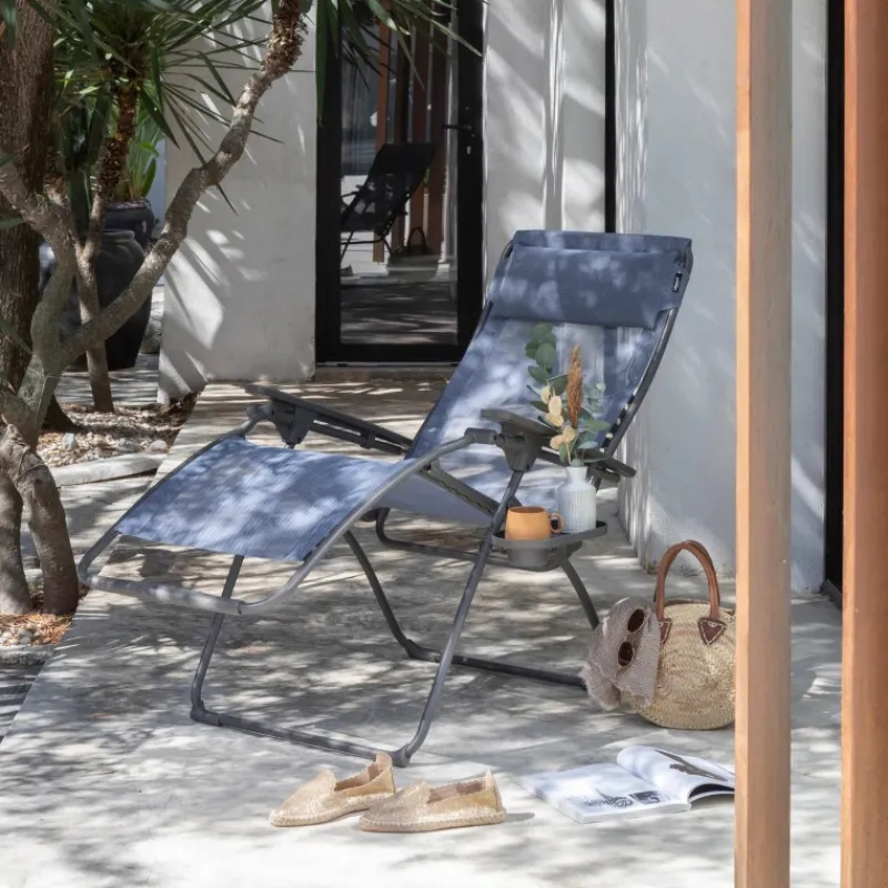 Questo modello relax è il punto di riferimento in materia di relax, poiché è stato concepito per offrire la posizione ideale per rilassarsi. Il principio è il posizionamento delle gambe leggermente più alte del livello del cuore per un riposo ottimale. Potrete cambiare posizione molto facilmente in base alle vostre esigenze e alzarvi senza alcuna fatica: i braccioli rimangono fissi, il che permette di avere un buon appoggio quando ci si vuole alzare dalla propria sdraio. Lo schienale ergonomico offre un comfort equilibrato e un buon sostegno della schiena grazie ai fissaggi con clip che arrivano fino all’altezza delle spalle. Questa sdraio-poltrona confortevole e facile da pulire trova facilmente posto in giardino o a bordo piscina.