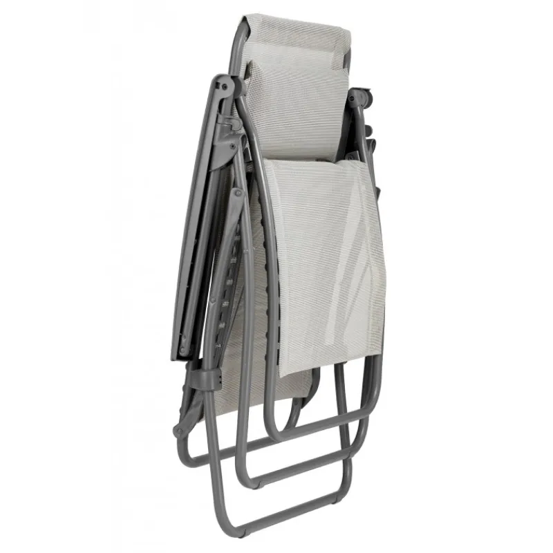 – Sospensioni: i tubi in acciaio e la tela sono collegati mediante clip in elastomero. Questo sistema brevettato Lafuma vi offrirà un comfort piùfermo, un buon sostegno per la schiena, montaggio/smontaggio semplificati della tela e una grande resistenza.