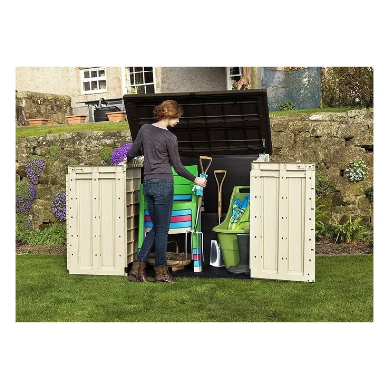 Portattrezzi in effetto legno di polipropilene ad alta qualità resistente a intemperie e ai raggi UV