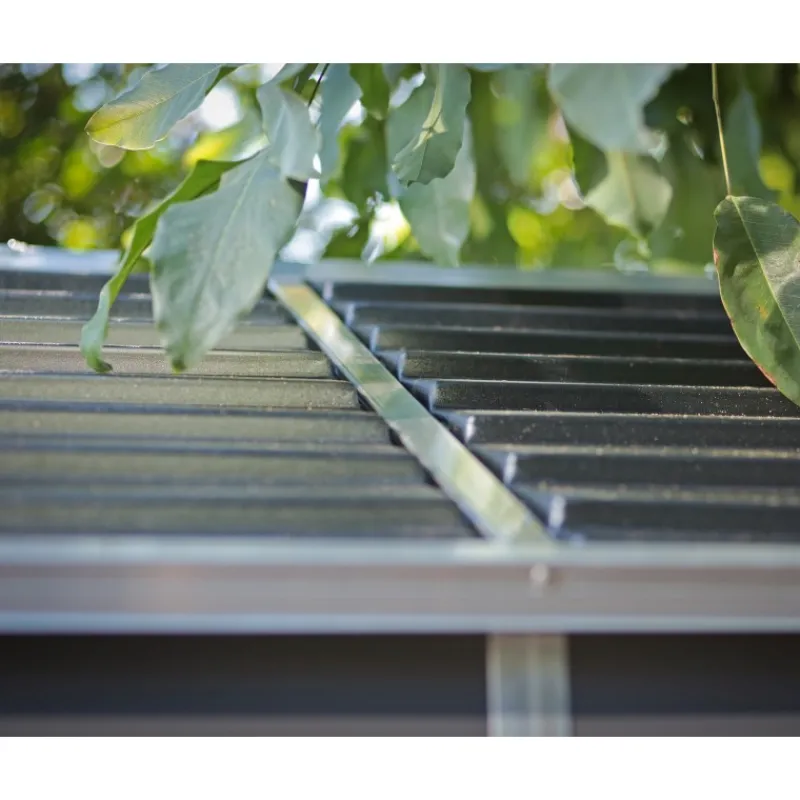 - Il tetto in policarbonato ultraresistente, simile alle tegole, trasmette la morbida luce naturale all’interno mantenendo l’opacità dall’esterno