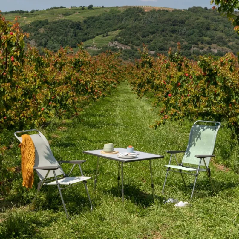 Con Alu Cham portate il comfort in campeggio Questa poltrona richiudibile è dotata di uno schienale alto ed ergonomico, molto apprezzato. Le cinque posizioni regolabili in maniera molto semplice consentiranno di inclinarla secondo i vostri desideri di relax. Molto leggera, è davvero la compagna ideale per le vacanze nomadi o per pause di svago in giardino o in terrazza.