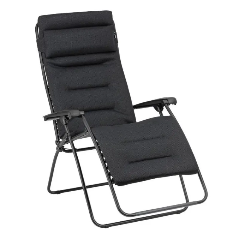 – Tela imbottita: AirComfort®, imbottitura a 3 spessori, traspirante, asciugatura rapida. Tela removibile e sostituibile con fissaggio tramite clip in elastomero (brevetto LAFUMA MOBILIER).