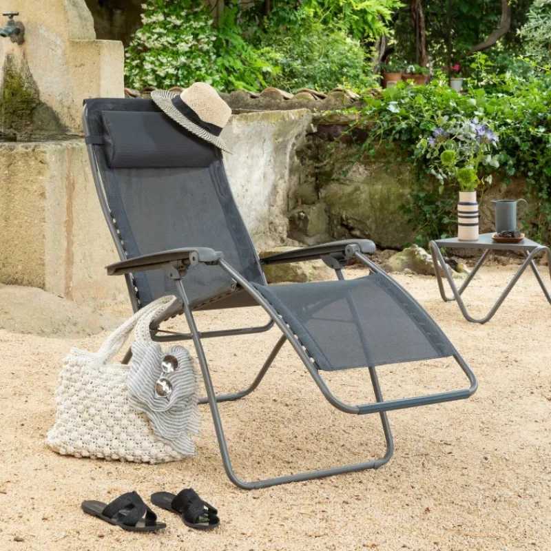 La sdraio-poltrona relax RSXA CLIP è un modello classico e intramontabile, fabbricato con materiali di qualità. Leggera e richiudibile, robusta e pratica, è la compagna dei bei momenti all’esterno. Lo schienale ergonomico offre un comfort equilibrato e un buon sostegno della schiena grazie ai fissaggi con clip che arrivano fino all’altezza delle spalle. Poggiatesta ergonomico, regolabile e removibile che vi consentirà di regolarla perfettamente per il massimo comfort.