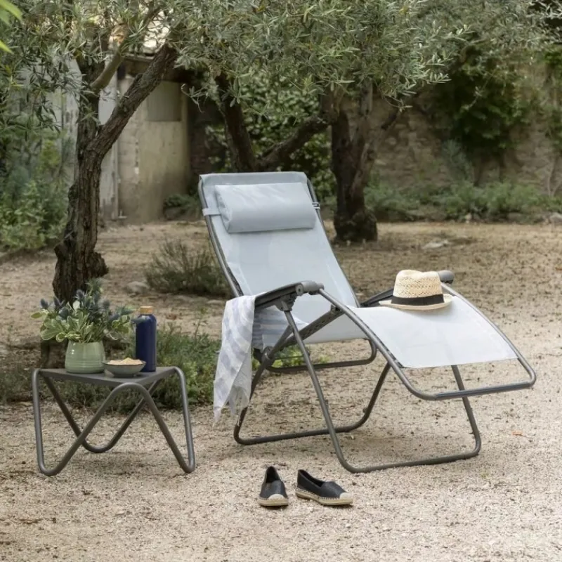 La sdraio-poltrona relax RSXA CLIP è un modello classico e intramontabile, fabbricato con materiali di qualità. Leggera e richiudibile, robusta e pratica, è la compagna dei bei momenti all’esterno. Lo schienale ergonomico offre un comfort equilibrato e un buon sostegno della schiena grazie ai fissaggi con clip che arrivano fino all’altezza delle spalle. Poggiatesta ergonomico, regolabile e removibile che vi consentirà di regolarla perfettamente per il massimo comfort.