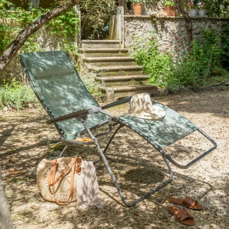 Privilegiate la generosità del comfort con questo formato XL della sdraio-poltrona RSXA CLIP, più lunga e più larga rispetto alla versione standard. La sdraio-poltrona relax RSXA CLIP XL è un modello classico e intramontabile, fabbricato con materiali di qualità e rispettosi dell’ambiente. Leggera e richiudibile, robusta e pratica, è la compagna dei bei momenti da trascorrere all’esterno. Lo schienale ergonomico offre un comfort equilibrato e un buon sostegno della schiena grazie ai fissaggi con clip che arrivano fino all’altezza delle spalle. Poggiatesta ergonomico, regolabile e removibile che vi consentirà di regolarla perfettamente per il massimo comfort. I braccioli ergonomici con effetto ondulato si sposano perfettamente con l’avambraccio grazie all’incavo a livello del gomito e la forma bombata all’altezza del polso.
