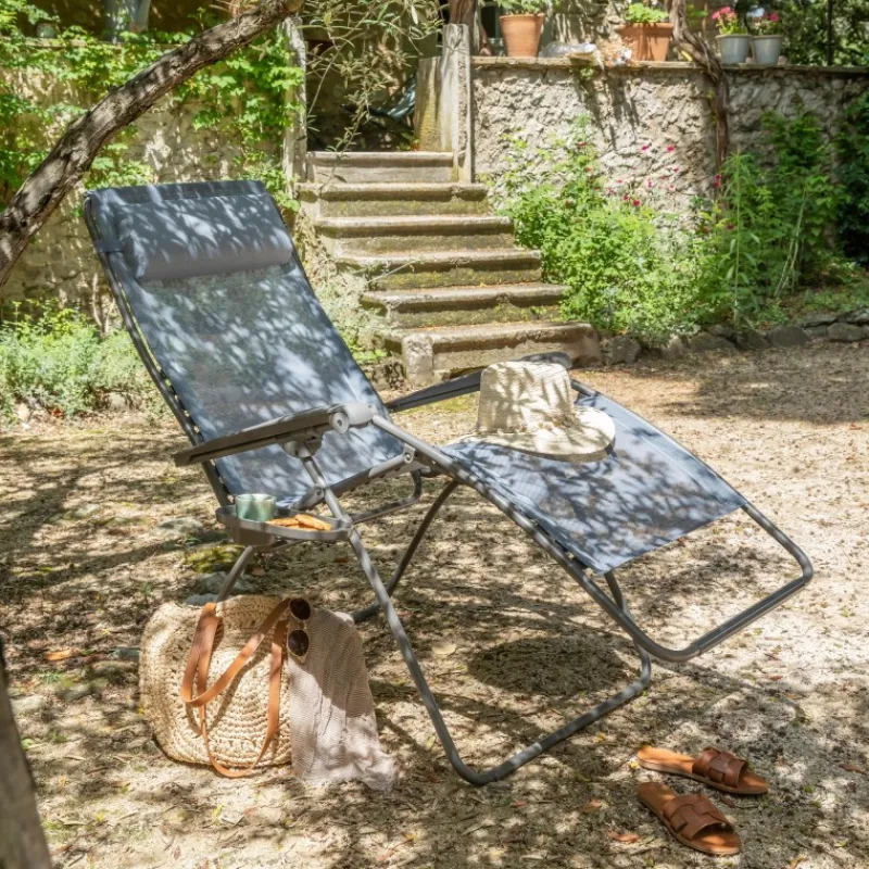 Privilegiate la generosità del comfort con questo formato XL della sdraio-poltrona RSXA CLIP, più lunga e più larga rispetto alla versione standard. La sdraio-poltrona relax RSXA CLIP XL è un modello classico e intramontabile, fabbricato con materiali di qualità e rispettosi dell’ambiente. Leggera e richiudibile, robusta e pratica, è la compagna dei bei momenti da trascorrere all’esterno. Lo schienale ergonomico offre un comfort equilibrato e un buon sostegno della schiena grazie ai fissaggi con clip che arrivano fino all’altezza delle spalle. Poggiatesta ergonomico, regolabile e removibile che vi consentirà di regolarla perfettamente per il massimo comfort. I braccioli ergonomici con effetto ondulato si sposano perfettamente con l’avambraccio grazie all’incavo a livello del gomito e la forma bombata all’altezza del polso.