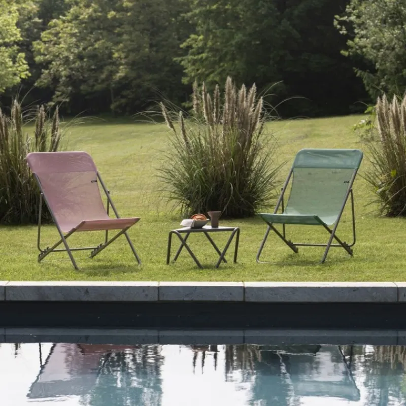 Il vero lusso è anche una questione di spazio! La sedia sdraio MAXI TRANSAT vanta dimensioni generose e si adatta a tutte le esigenze di comfort. Inoltre, l’assenza di traverse nella parte anteriore della seduta offrirà alle vostre gambe un eccezionale comfort. La tela removibile è facilmente sostituibile per rinnovare la sedia a sdraio o semplicemente per cambiare look. La chiusura con cremagliera in quattro posizioni vi consentirà di regolare l’inclinazione dello schienale per ottenere il comfort ideale. Robusta, ultra compatta e facile da pulire, a suo agio in terrazza, in giardino, così come a bordo piscina. Facile da spostare e da riporre.