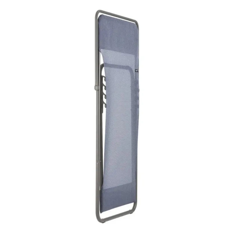 Perché il vero lusso è anche una questione di spazio. La MAXI TRANSAT ostenta dimensioni generose ed è perfettamente adatta alle nuove esigenze di comfort. Inoltre, l’assenza di traverse nella parte anteriore della seduta offrirà alle vostre gambe un eccezionale comfort. La tela removibile è facilmente sostituibile per rinnovare la sedia a sdraio o semplicemente per cambiare look. La chiusura con cremagliera in quattro posizioni vi consentirà di regolare l’inclinazione dello schienale per ottenere il comfort ideale. Robusta, ultra compatta e facile da pulire, a suo agio in terrazza, in giardino, così come a bordo piscina. Facile da spostare e da riporre.