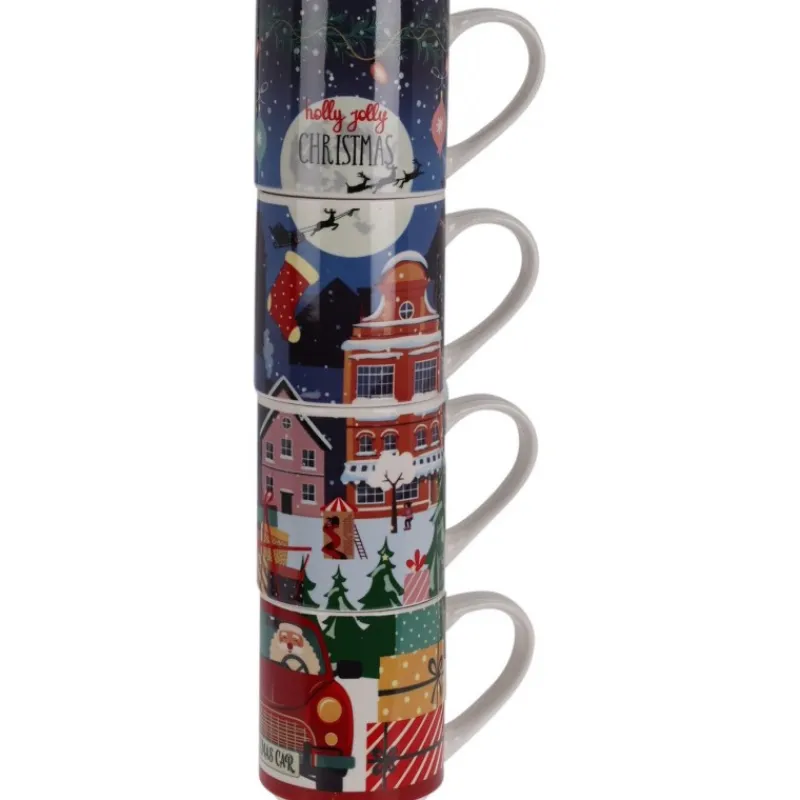 Set 4 Tazze con Paesaggio di Natale in New Bone da 265 ml. Pezzo Singolo
