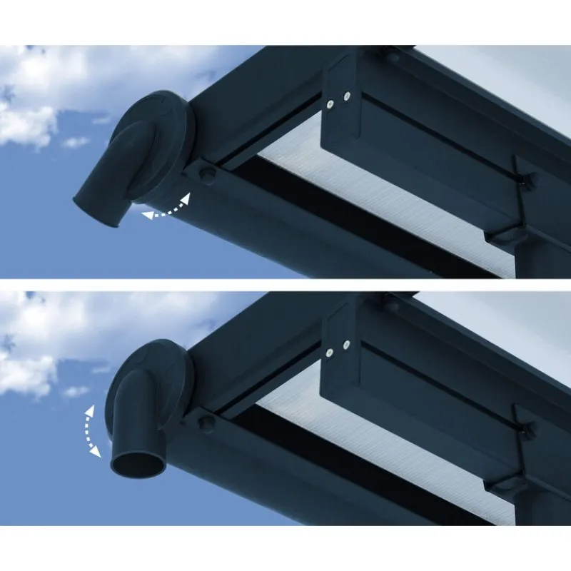 - Le grondaie integrate e le teste delle grondaie regolabili (2), ciascuna di 2 pollici di diametro, consentono un facile drenaggio e la raccolta dell’acqua piovana per un sistema di irrigazione sostenibile.