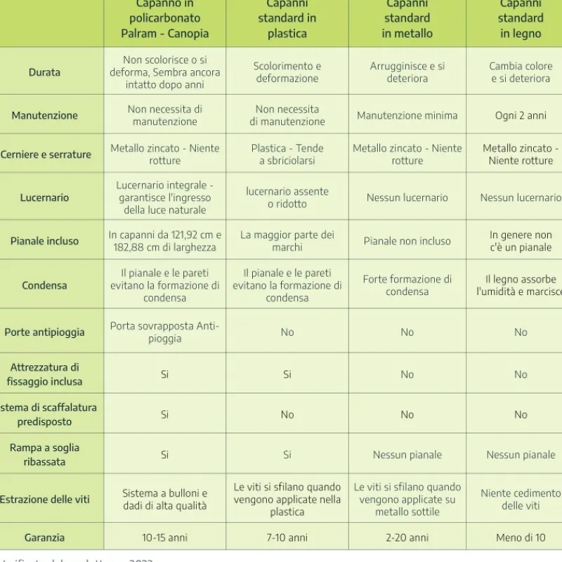 - Pannelli in policarbonato che bloccano il 100% dei raggi UV dannosi praticamente indistruttibili