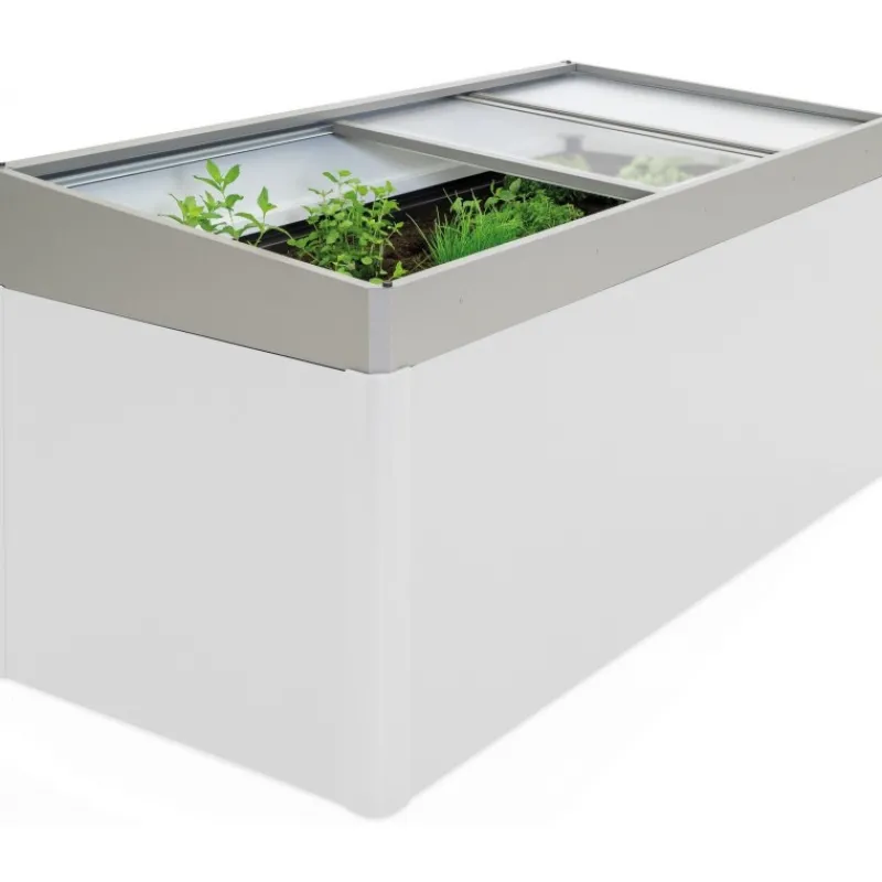 Adatto solo per la misura 2×1. Efficace protezione antigelo e facilità di accesso grazie a 4 pannelli scorrevoli a doppia parete, facilmente rimovibili. Il sopralzo è a prova di tempesta e dispone di un drenaggio dell’acqua piovana all’interno dell’aiuola rialzata.