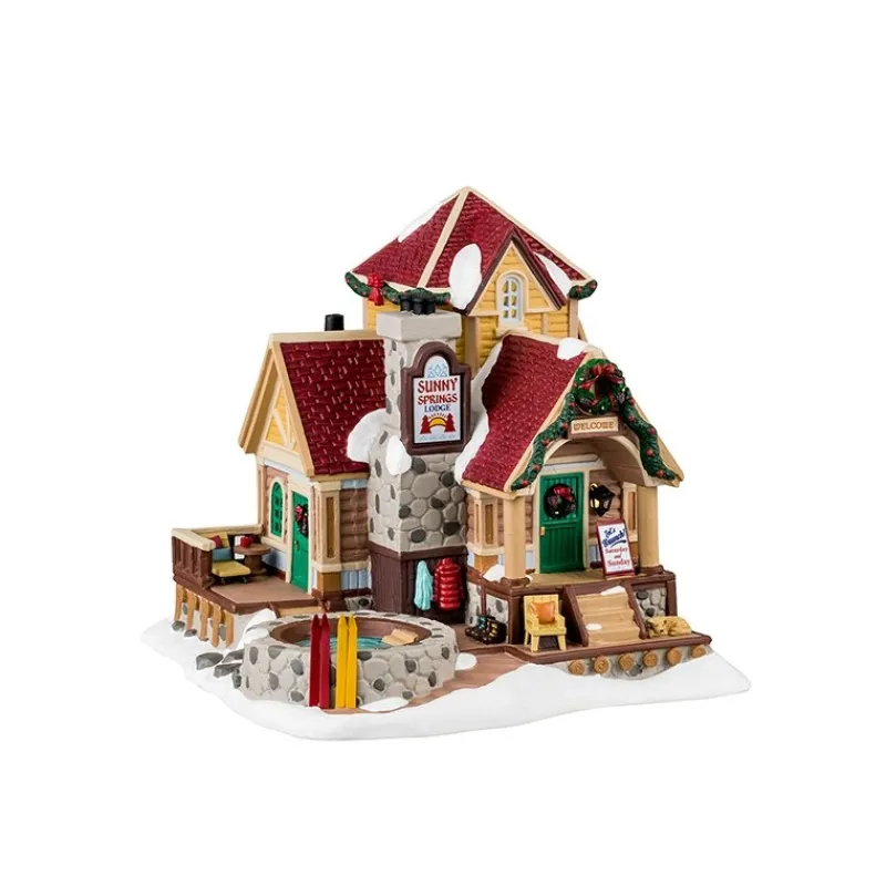Lemax Sunny Springs Lodge Cod. 45229 misura cm 18.4 x 19.5 x 18h ed è composto principalmente in Porcellana.