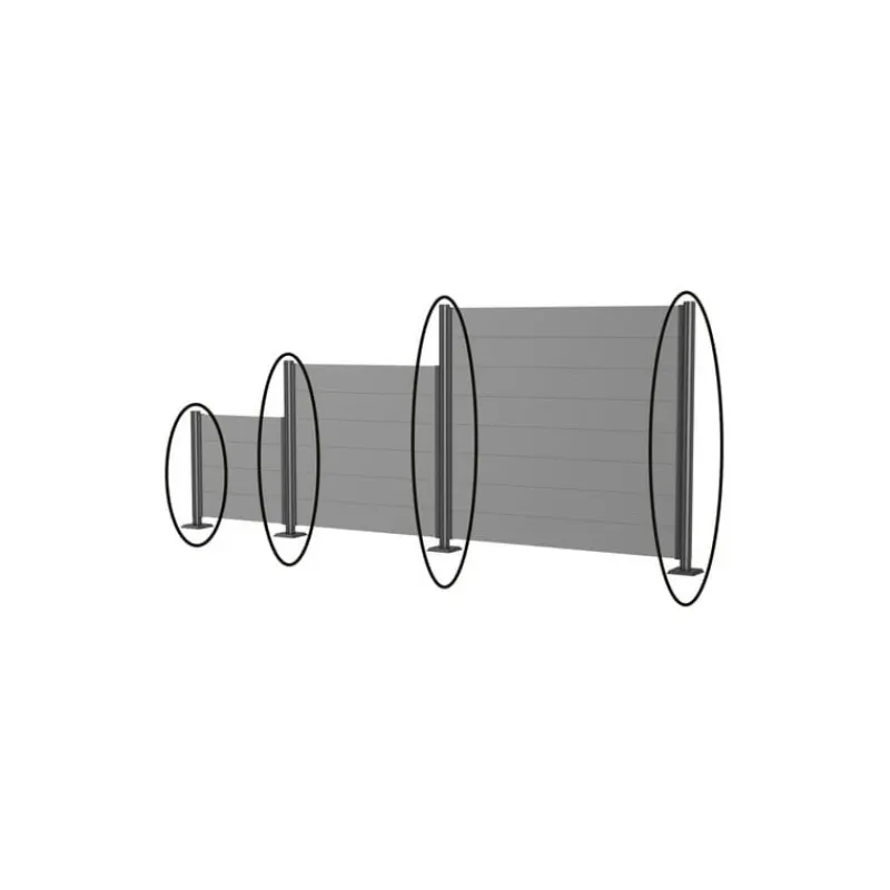 Sono tassellati a terra. I supporti devono essere utilizzati come elementi iniziali, finali, angolari o anche come montante di collegamento per elementi Frangivista. Diametro: 10 cm.