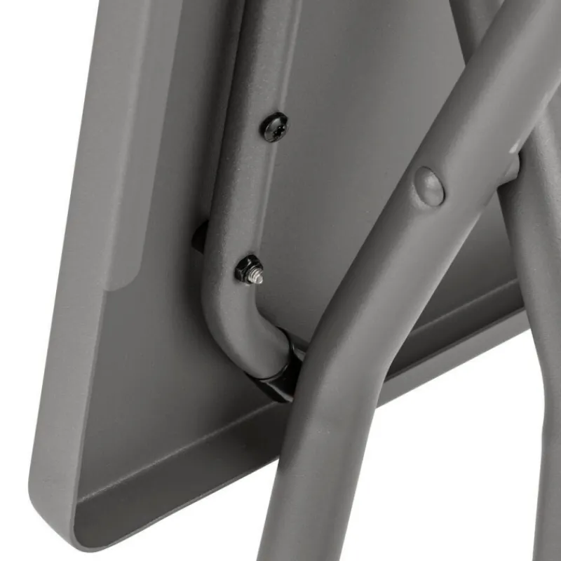 – Struttura: base con tubo in acciaio A.L.E. (Alto limite elastico) Ø 25 mm. Vernice 100% poliestere, elevata resistenza ai raggi UV. Sistema di progettazione che consente di ottenere il massimo dello spazio all’altezza delle gambe.