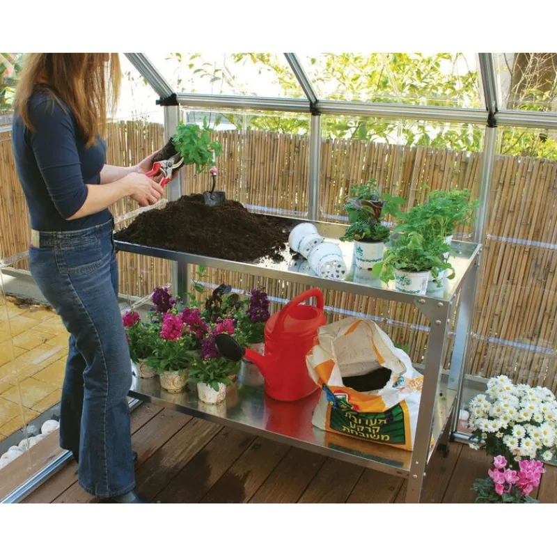 Scopri il Tavolo da Lavoro in Acciaio Canopia: robusto, versatile e resistente. Ideale per organizzare il tuo spazio di lavoro in serra, garage o giardino. Dotato di 2 ripiani regolabili, supporta fino a 75kg ciascuno. Il ripiano superiore è reversibile per riporre terriccio. Realizzato in acciaio galvanizzato, non necessita di manutenzione. Facile da assemblare e spostare. Dimensioni: 51x115x80 cm. Canopia, la qualità che dura nel tempo.