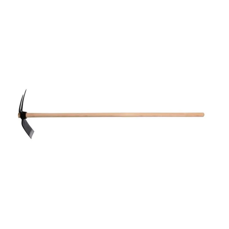 Praticissima zappa bidente con lama in acciaio e manico per dissodare la superficie del terreno. – Lama in acciaio forgiato – Con zappa e bidente – Peso attrezzo: 600 g – Con manico in legno