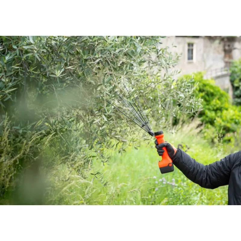 L’abbacchiatore Magma E-1350 21 V è l’estensione della linea Magma 21 V per soddisfare il bisogno di raccolta delle olive. Grazie a un movimento di rotazione conica verso l’interno permette di non disperdere il raccolto e facilitare il lavoro. Offre un campo di lavoro di 35 cm grazie alle 8 astine in carbonio, che con una velocità di 1.350 battute al minuto danno la possibilità di raccogliere fino a fino a 120 kg/h di olive.