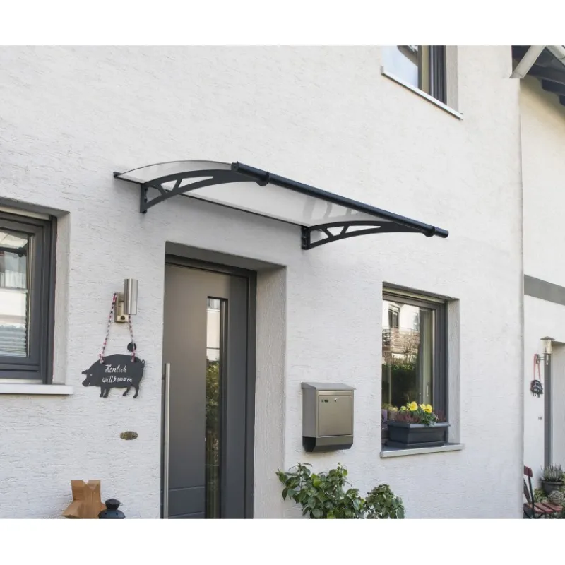 Scopri la Pensilina da Esterno Canopia Altair, elegante e pratica. Realizzata con bracci di supporto in acciaio galvanizzato e pannello solido trasparente, protegge la tua porta e finestre dalle intemperie. Facile da montare, è resistente ai raggi UV e alle condizioni climatiche difficili. Dimensioni: 150×91 cm. Proteggi il tuo ingresso con stile e qualità Canopia.
