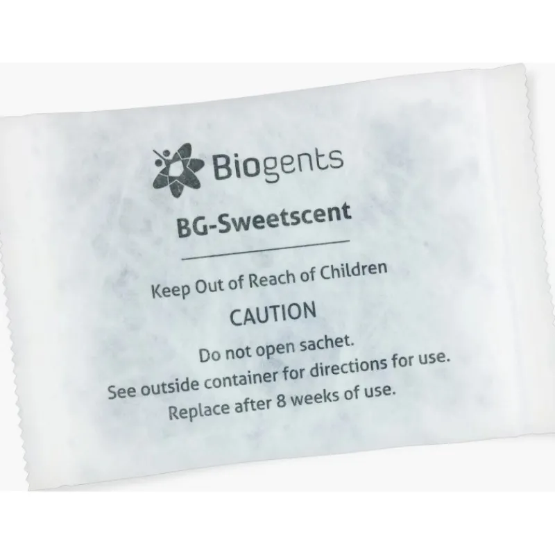 Cattura più zanzare con Biogents Sweetscent. L’attrattivo per zanzare BG-Sweetscent, ottenuto con una tecnologia brevettata da Biogents, è l’unico che simula l’odore della pelle umana senza l’utilizzo di insetticidi. La bustina viene posizionata all’interno della trappola ed è efficace fino a due mesi. BG-Sweetscent può essere utilizzato con BG-Mosquitaire (+/- CO2), BG-Home oppure con altre trappole che attraggono zanzare che pungono.