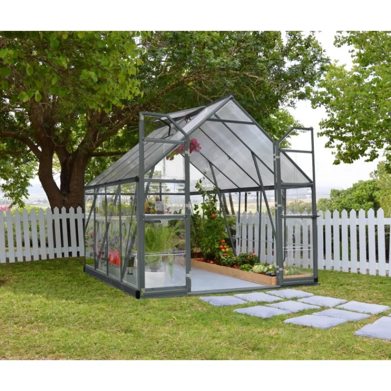 Quando vi diciamo che i kit serra Palram – Canopia Balance forniscono alle vostre piante le condizioni ottimali per il nutrimento e la crescita, facciamo sul serio. Con due tipi di vetrate, si ottiene una serra fai da te equilibrata che unisce la protezione dei pannelli del tetto a doppia parete diffusa con la trasmissione della luce dei pannelli a parete cristallina per condizioni di crescita ideali. Tutti i pannelli sono fatti di policarbonato protetto dai raggi UV, un polimero di fascia alta simile al vetro e virtualmente infrangibile che è particolarmente adatto alle serre.L’area di lavoro extra-large ti dà ampio spazio per coltivare un’abbondanza di verdure ed erbe e per riporre gli strumenti e gli accessori di cui hai bisogno. La serra Balance è anche estremamente accessibile con ampie porte doppie e una soglia bassa per far entrare e uscire le carriole e abbastanza spazio per trasferire grandi cassette di piante. La combinazione dei pannelli sicuri del policarbonato con il telaio di alluminio resistente alla ruggine e le travi di sostegno extra forti vi fornisce una serra ben progettata e durevole, in modo da non doversi mai preoccupare della robustezza o della sicurezza della vostra serra. Per un complemento bello, ben progettato e spazioso alla vostra esperienza di giardinaggio, acquisti oggi una serra da cortile Balance!- Policarbonato: 100% protetto UV, virtualmente infrangibile e non ingiallisce o non diventa fragile col tempo