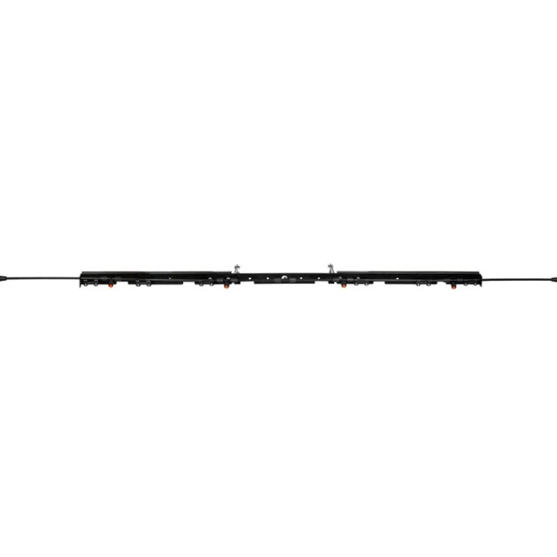 Barra di supporto in acciaio con astine in fibra di vetro e ugelli in plastica per getto a ventaglio.