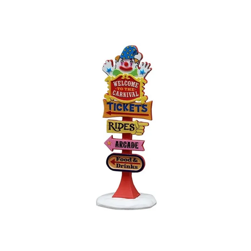 Benvenuto nel mondo incantato di Lemax. Oggi ti presentiamo il Carnival Welcome Sign Cod. 54465, un elemento di decorazione unico e affascinante, perfetto per dare un tocco di magia ai tuoi villaggi natalizi o halloween.