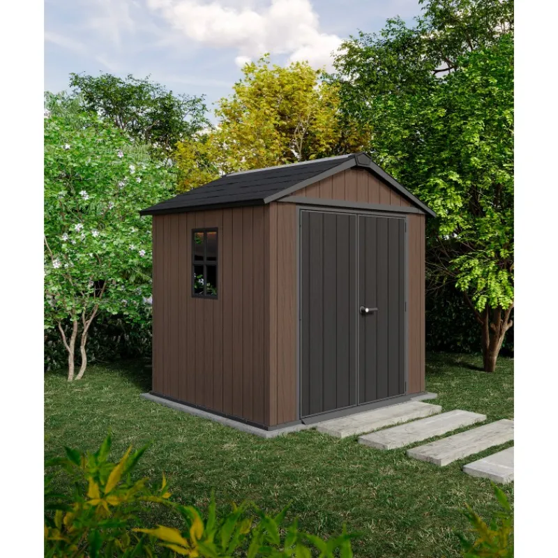 Ciò che distingue veramente questo capanno sono i suoi avanzati pannelli Evotech, che riproducono fedelmente l’aspetto e la sensazione del legno genuino, pur offrendo i vantaggi della resina resistente. Puoi dimenticarti di preoccupazioni come ruggine, marciume o sbucciature: questo capanno è progettato per durare a lungo e richiedere una manutenzione minima. Il modello di dimensioni medie presenta porte a doppia larghezza con serratura per un comodo accesso agli oggetti più grandi. Il pavimento appositamente progettato mantiene i tuoi oggetti sollevati da terra, mentre le ventilazioni integrate assicurano un adeguato flusso d’aria. Con le robuste pareti Evotech da 20 mm di spessore, questo capanno non solo aumenta la solidità, ma offre anche un aspetto attraente simile al legno. Trasforma il tuo spazio di stoccaggio nel giardino con il capanno Keter Newton Plus: una combinazione fantastica di stile, efficienza e convenienza a bassa manutenzione per migliorare la tua esperienza all’aperto!