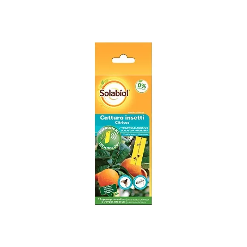 La trappola adesiva Cattura Insetti è l’innovativa soluzione naturale per la cattura ed il monitoraggio della minatrice serpentina degli agrumi (Phyllocnistis citrella) e della mosca mediterranea della frutta (Ceratitis capitata).